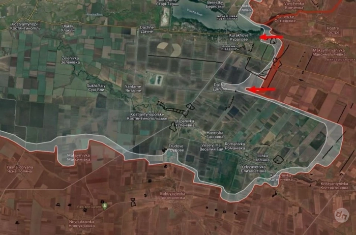 Южнее Новодаровки ВС РФ продвинулись на участке шириной до 1.4 км на глубину до 1.6 км.