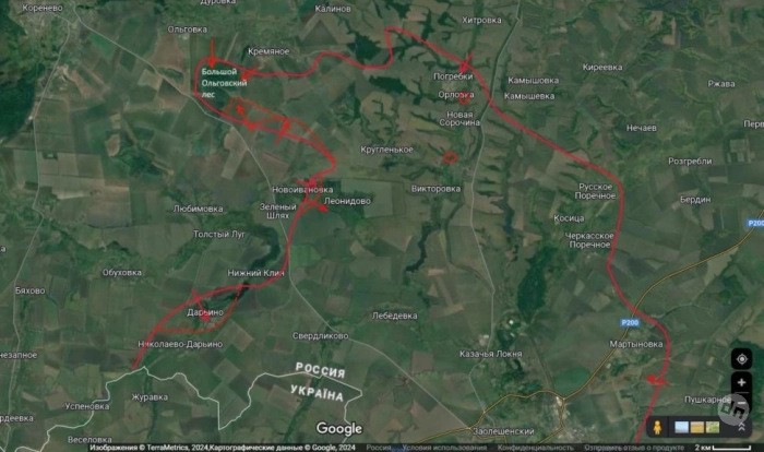 В качестве примера он приводит информацию, по которым армия России контролирует населенные пункты Орловка, Погребки и Новые и Старые Сорочины. Ранее аналитик уже писал, что по сути прорвавшиеся к деревням заняли круговую оборону и отрезаны от основных сил.