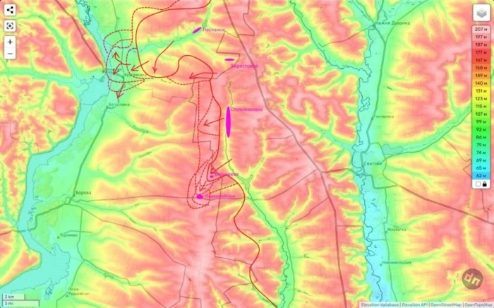 Они постепенно берут под контроль часть трассы из Сватово в Боровую, восточнее Первомайского. А еще продолжают расширять свой контроль над прилегающими водораздельными холмами.