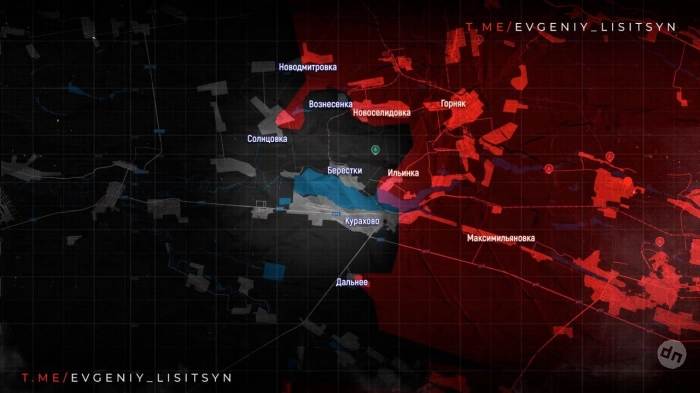 На Кураховском направлении наши войска подошли к н. п. Берестки, закрепившись на подступах с северо-востока. После занятия Бересков село Новая Ильинка будет отрезана, что прекратит снабжение Курахово через дамбу, соединяющую эти два населённых пункта. Южнее Кураховского водохранилища Армия России при поддержке бронетехники и артиллерии штурмует н.п. Ильинка (западнее Антоновки).