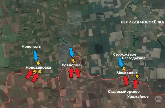 После освобождения Угледара продолжается продвижение российских войск к Великой Новоселке. Также фиксируются боевые действия в Новодаровке, Макаровке и Ильинке.