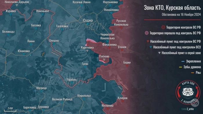 Карта боевых действий в Курской области: данные на сегодня, 17.11.2024