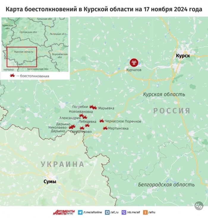 Карта боевых действий в Курской области. Информация на 17 ноября 2024 года