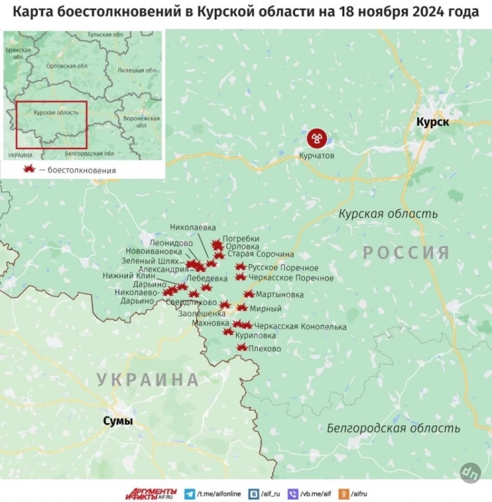 Карта боевых действий в Курской области. Информация на 18 ноября 2024 года