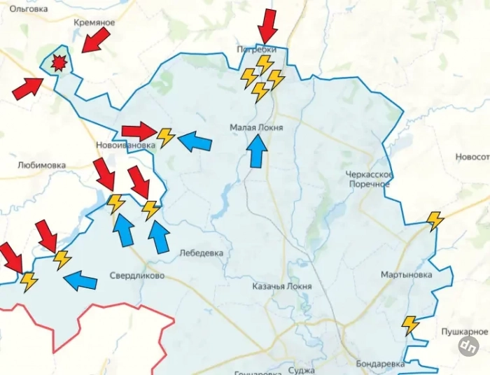 Как уточняет PulsePen, на остальных участках ситуация не претерпела особых изменений. Идут бои в районе Новоивановки, в Дарьино, южнее Погребков. Также встречные бои фиксируются практически на всех участках Курского направления.