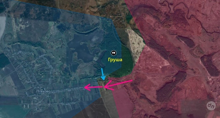 В районе Плехово по информации с мест. Наши зацепились буквально за несколько домов на восточной окраине, дальнейшее продвижение осложнено тем, что ВСУ сразу пытаются отрезать наших бойцов сверху, из леса (позиция Груша). Также по информации с мест, в этом лесу есть американские наёмники (предположительно из Блеквотер).