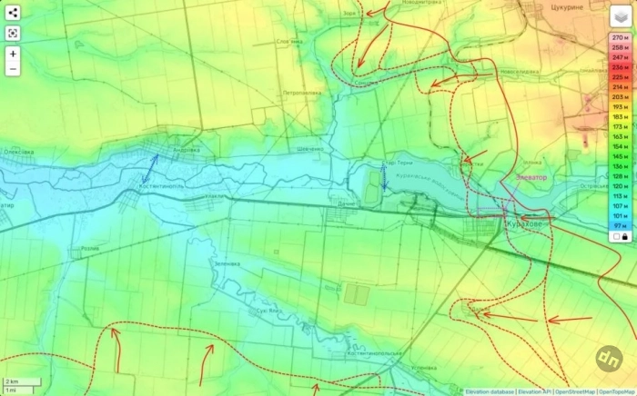 Вооруженные силы Российской Федерации также продвигаются к Курахово с юга, приближаясь к городским окраинам на расстояние в полтора километра.
