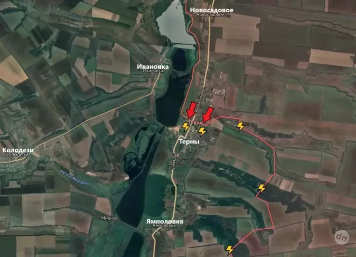 На Лиманском направлении продолжаются ожесточённые бои в Тернах. За последние дни нашим бойцам удалось немного продвинуться в центре села. Авиация ВКС РФ работает по живой силе и технике противника - поражены ПВД ВСУ в Тернах и Ивановке.