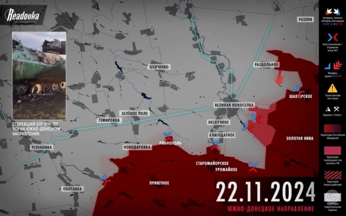 ВС России закрепляют успехи и освобождают новые населённые пункты в Донбассе: карта боевых действий на 23.11.2024