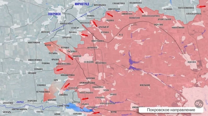 На Покровском направлении продолжаются ожесточенные бои в районе Николаевки и к югу от Лысовки, российские войска также наступают в сторону Пустынки и Желтого.