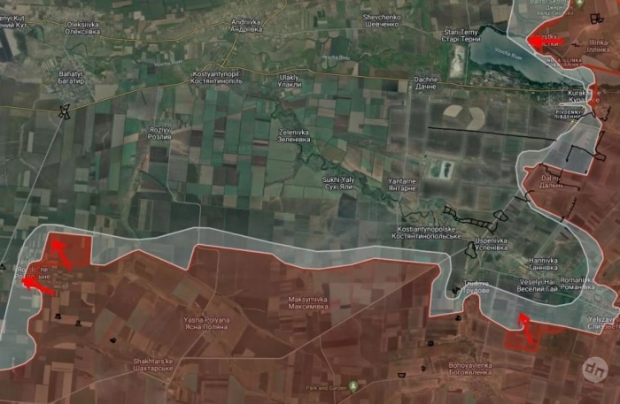 В свою очередь западнее Петровки российские войска продвинулись вдоль р. Солёная на участке шириной до 2.15 км и ведут штурмовые действия на юго-восточной окраине Жёлтого.