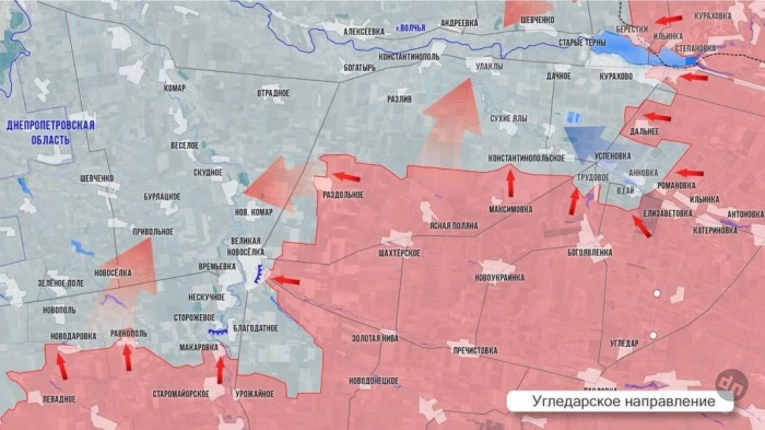 Подразделения ВС РФ пересекли трассу Успеновка-Курахово северо-западнее Дальнего. Пока не очень понятно, с чем связано продвижение на этом участке. Будут ли наши бойцы продвигаться по полям в сторону Дачного или свернут на север в направлении южных окраин Курахово.