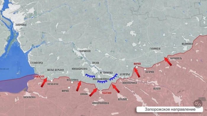 На Запорожском участке в районе Малой Токмачки идут встречные бои. ВСУ методично обстреливают Энергодар – за сутки было два обстрела из артиллерии и 6 атак дронами. Из-за повреждения ЛЭП на несколько часов практически весь регион оставался без света.