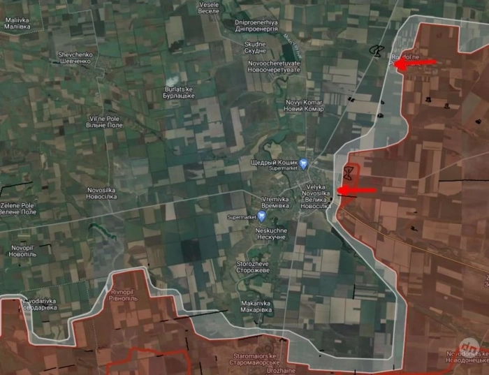 На Времевском направлении восточнее Великой Новосёлки ВС РФ расширили контроль территории и продвинулись на участке шириной до 2.25 км.