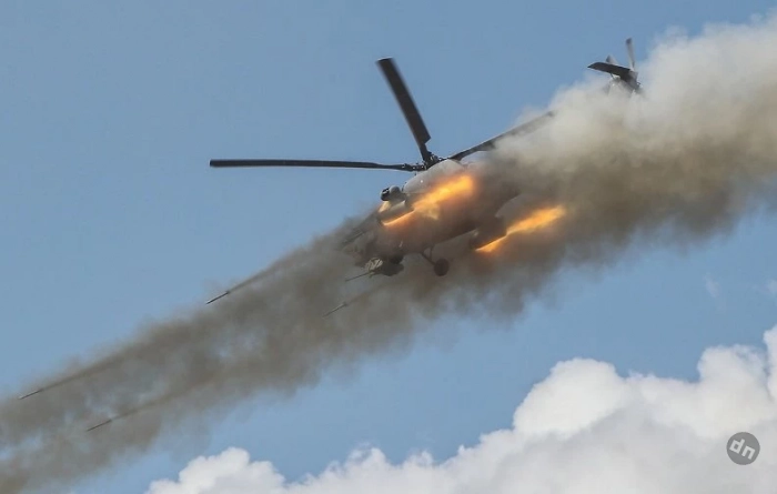 Экипаж вертолёта действовал в составе смешанной тактической группы и применил авиационную управляемую ракету для поражения целей. После удара военные выполнили противоракетное маневрирование на предельно малой высоте, отстреливая тепловые ловушки для предотвращения попадания ракет переносных зенитных ракетных комплексов противника.