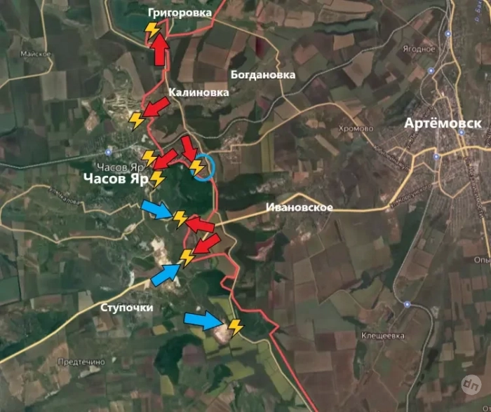 На юго-восточных окраинах и подступах к Часов Яру ВСУ проводят контратаки. Врагу удалось оттеснить наших бойцов от рудников «Блок-9» и «Юго-восточный».