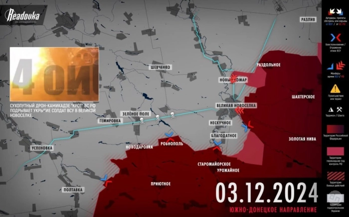 Обзор ситуации на фронтах специальной военной операции (СВО) на Украине, последние новости от 4 декабря 2024 года, а также свежие карты боевых действий - в материале сайта N4k.