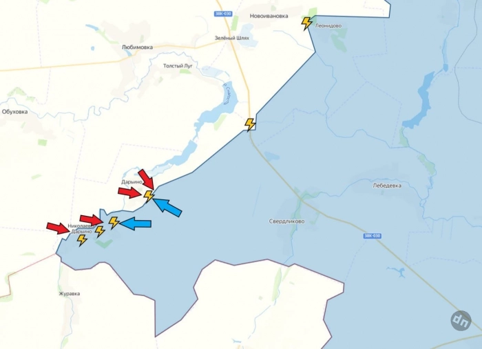 Ряд источников сообщает о контратаках ВСУ в районе Дарьино и Николаево-Дарьино. Как информирует PulsePen, Дарьино находится под контролем ВС РФ, вражеская атака отбита. Николаево-Дарьино - серая зона, идут встречные бои.