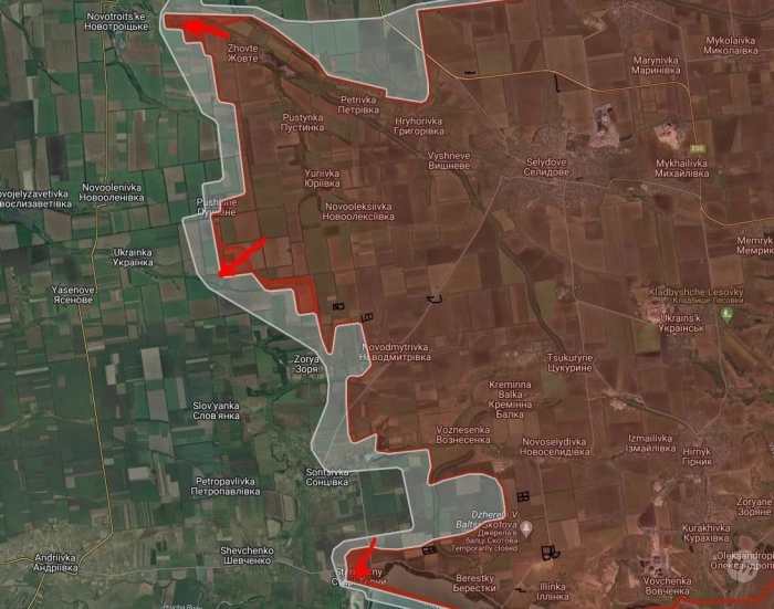 Российские войска расширили контроль территории от Пушкино до Зари на участке шириной до 3.65 км.