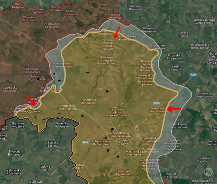 Украинские войска пытаются контратаковать населённый пункт Дарьино, продолжаются встречные бои в населённом пункте Николаево-Дарьино.