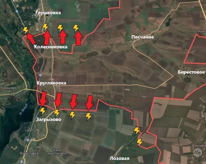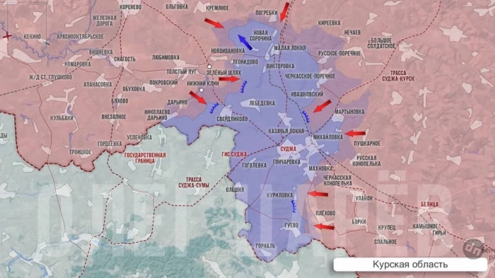 А вот об успехах на юге Суджанского района, говорить похоже, все же можно. Здесь наши морпехи в ходе ожесточенных боев все-таки взяли под контроль Плехово и прилегающие лесные массивы, отбросив ВСУ за Псел. До юго-восточных окраин Суджи остается всего около 6 км.