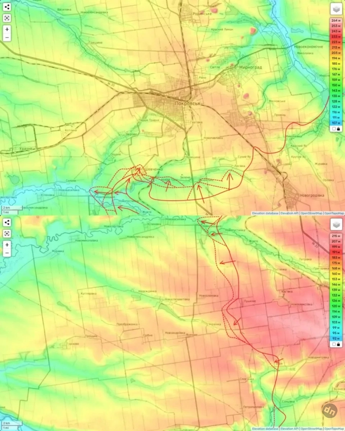 Что уже является угрозой следующей линии обороны ВСУ юго-западнее Покровска по селам Песчаное-Зверовое-Первое Мая). Прорыв ее станет большой проблемой для противника. Занятие этой линии откроет нам путь к охвату города с запада.