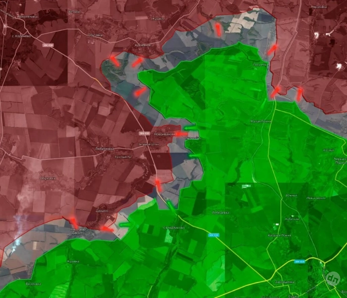 В районе Николаево-Дарьино наши части предприняли несколько атак, но продвинуться пока не удается, ВСУ держатся. В районе Дарьино-Нижний Клин российские войска закрепились на новых позициях после недавнего продвижения по направлению к Свердликово. Дальнейшее наступление предстоит по открытым полям, где противник соорудил мощные укрепления. Такой маневр требует серьезной подготовки. Или иных вариантов действий.
