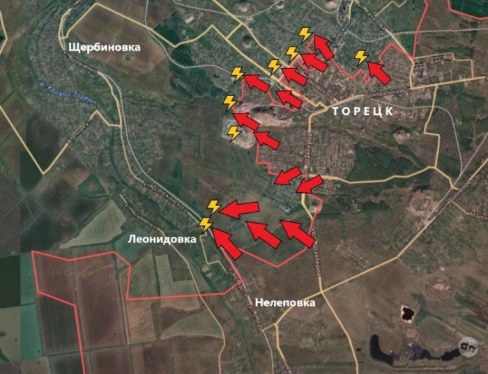 На Торецком направлении в Торецке ВС РФ расширили контроль территории в районе шахты «Центральная».
