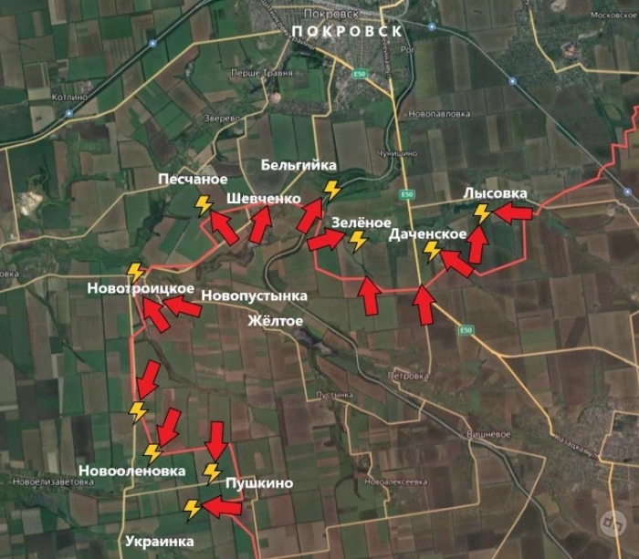 По последней информации, поступающей с места боев у Покровска, российские силы продолжают брать город в кольцо. ВСУ пытаются удержать Покровск, так как здесь находится шахта, питающая Украину коксующимся углем. На фоне бедственного положения в энергосистеме без этого угля велик риск паралича металлургической промышленности всей Украины.