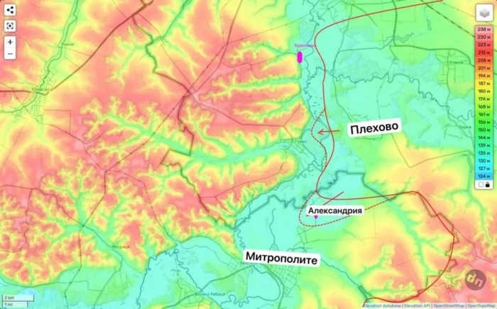 Ситуацию детально разобрал военный эксперт Юрий Подоляка и он призывает взять еще один населенный пункт на Сумщине - село Мирополье, который имеет серьезную логистику и от него в сторону областного центра идет заасфальтированная трасса. Подоляка продемонстрировал карту участка фронта с рельефом местности, чтобы было наглядно понятно причины маневра.