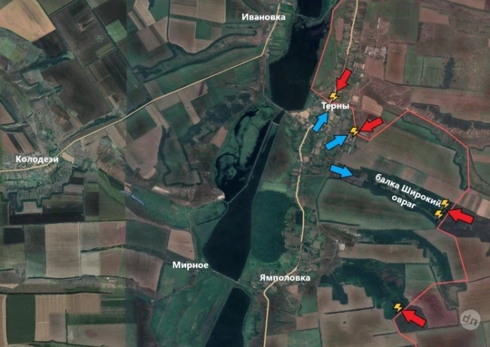 На Лиманском направлении в Тернах продолжаются бои в центре села. Сообщается, что на участок прибыл на усиление один из батальонов 60 омбр ВСУ. Вероятно, противник попытается провести несколько контратак в границах села, чтобы восстановить утраченное ранее положение вдоль балки Широкий Овраг. Так что освобождение Тернов пока что откладывается на неопределённый срок.