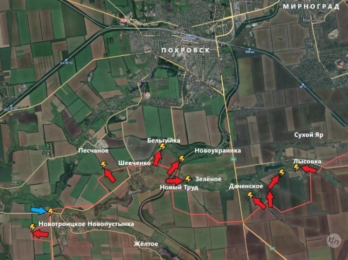 Продолжается продвижение ВС РФ в разных направлениях от взятого под контроль Шевченко. На запад - в направлении Песчаного, на север - в направлении Бельгийки, на восток - в направлении Новоукраинки и Нового Труда. В Бельгийке и Новом Труде идут встречные бои. До Покровска осталось всего ничего, что вызывает у вражеских ресурсов тряску. Правда, перед началом штурма города предстоит зачистить окрестности и, возможно, зайти ещё и с юго-запада, сообщает PulsePen.