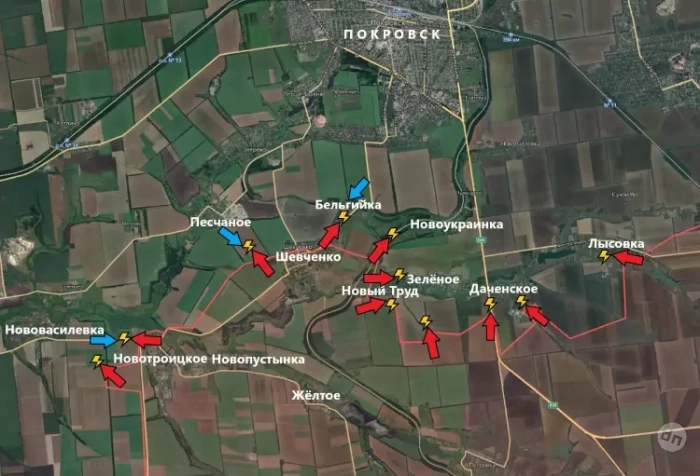 На Покровском направлении российские войска продвинулись в Шевченко и в направлении Песчаное. Под контроль ВС РФ перешли Новотроицкое и Пушкино.