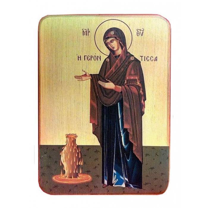 В другой раз в монастыре близился конец дней старца-игумена. Получив откровение о своем скором уходе, он желал перед смертью причаститься Святых Христовых Тайн и смиренно просил священника поспешить с совершением Божественной литургии. Однако священник не отозвался на его просьбу. В этот момент из алтаря, где находилась чудотворная икона, раздался грозный голос, повелевший священнику немедленно исполнить желание игумена. Священник причастил умирающего, и тот мирно отошел ко Господу. Именно после этого чудесного события икона получила название «Геронтисса», став покровительствующей старчеству.