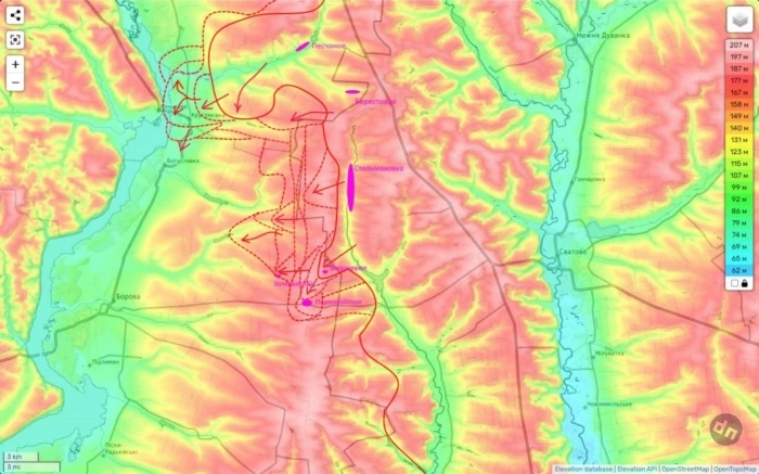 На Купянском направлении головной болью противника постепенно становится наш плацдарм на западном берегу Оскола севернее Купянска (в районе н.п. Двуречная).
