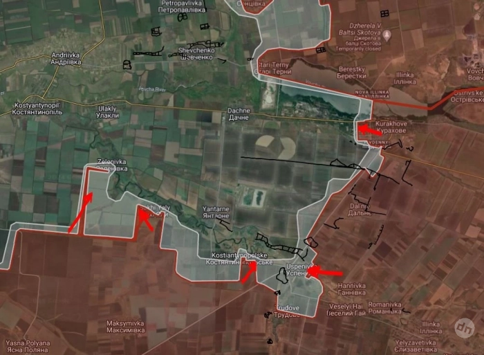 Также сообщается, что российская армия продолжает наступление в районе населенного пункта Даченское под Красноармейском, а также к северу от Часов Яра, что создает предпосылки для окружения украинских сил в районе Макаровки.