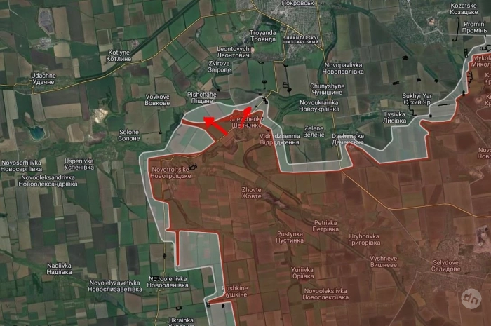 На Покровском направлении ВС РФ расширили контроль территории южнее Покровска, продвинулись в северной части Шевченко. Западнее Зари и Солнцевки российские войска давят в направлении Славянки и Петропавловки.