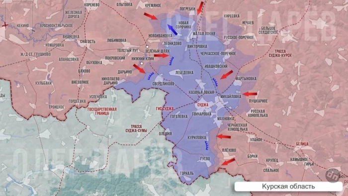 Также российские военные давят с противоположного фланга, штурмуя Погребки и планомерно двигаясь к отрезанию Малой Локни. Потеря этого района повлечет для ВСУ развал всей линии их обороны севернее Суджи, в том числе усложнит удержание Леонидово и участков вокруг Новоивановки, сообщает Олег Царёв в своём Telegram-канале.