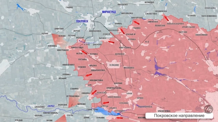 На Покровском направлении ВС РФ значительно расширили «клин» на участке Шевченко - Новотроицкое, освободив Новый Труд и выбив противника с нескольких позиций к северу от Пушкино.