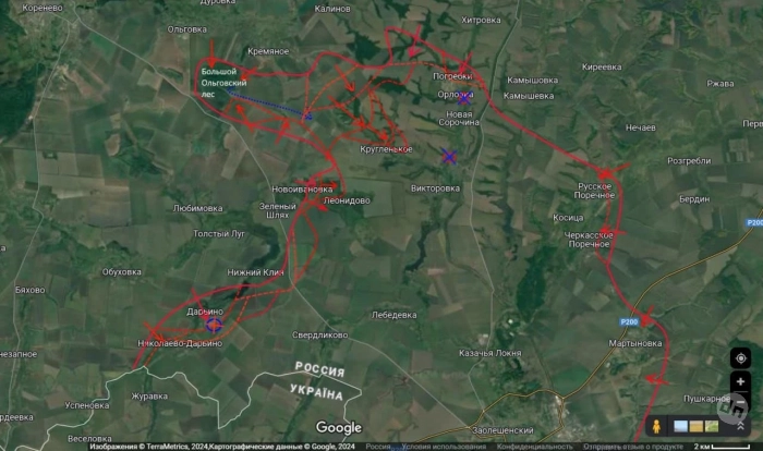 "Также, уже южнее Суджи продолжаются упорные бои в районе Черкасской Конопельки. Наши части медленно движутся на север и сейчас бои ведутся по трассе на Суджу в районе съезда на Махновку", - проинформировал Подоляк.