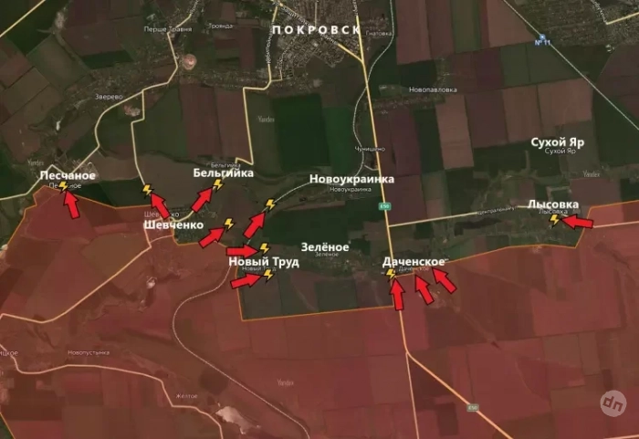 На Покровском направлении армия России продолжает наступление к югу от Покровска.