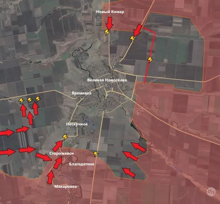 На ВеликоНовосёлковском направлении российские войска имеют тактические успехи западнее Сторожевого, под контроль перешли господствующие высоты.