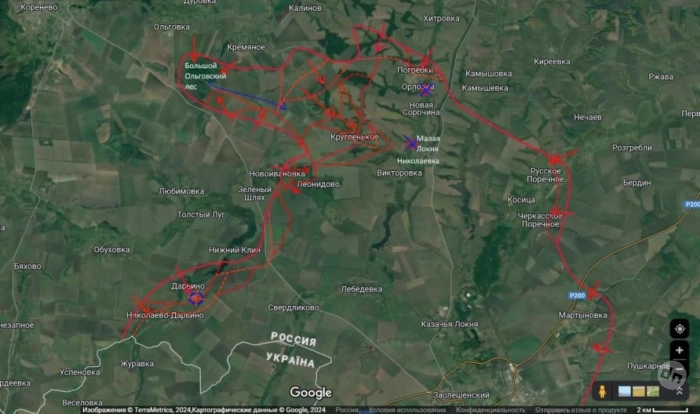 Карта боевых действий в Курской области от Юрия Подоляки на 23.12.2024