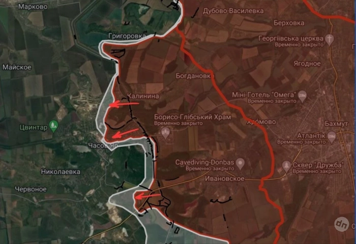 На ЧасовЯрском направлении ВС РФ имеют тактические успехи в мкр. Северный, продолжаются позиционные бои в мкр. Октябрьский и Новый.