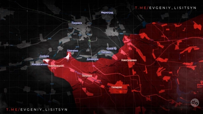 На Покровском направлении бои идут в районе села Шевченко, расположенного южнее города, а также западнее и северо-западнее населенного пункта Заря. Активные действия ведутся в районе Новооленовки и Украинки. Российские подразделения выравнивают линию фронта, ликвидируя "карманы" между освобожденными селами.