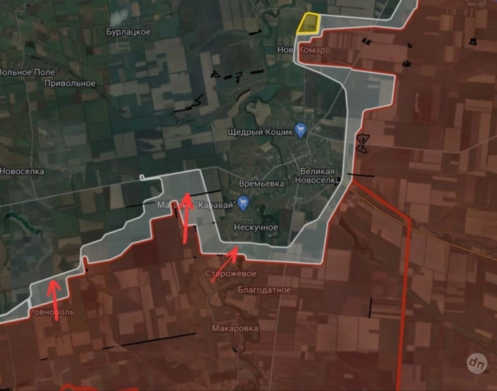Великоновосёлковское направление. ВС РФ расширили контроль территории западнее Времьевки и в районе Ровнополя.