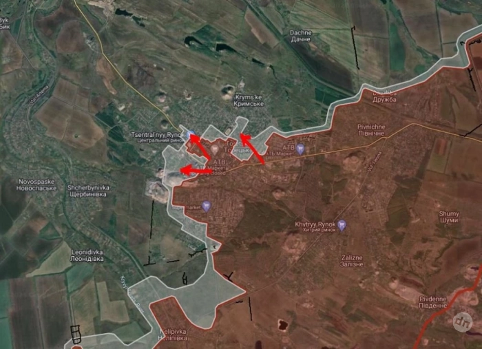 Торецкое направление. ВС РФ имеют тактические успехи в районе Центрального рынка, давят в направлении террикона шахты «№10», севернее террикона №2 шахты «Центральная» и в направлении шахты «Торецкая».