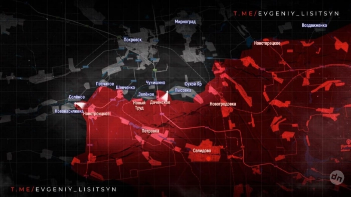 Красноармейское направление. На данном участке боевых действий российские парни перешли ручей Солёный и зашли га западную часть села Лысовка, тем самым зажав поотивника с трех сторон, сообщает военкор Евгений Лисицын в своём Telegram-канале.