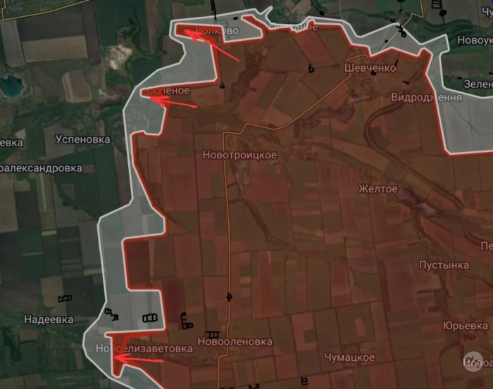 ВС РФ расширили контроль территории западнее Волково на глубину до 800 м., в Солёном на глубину до 600 м. и в районе Новоелизаветовки на участке шириной до 1.42 км на глубину до 650 м.