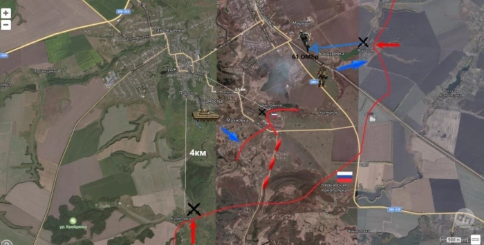 Самые горячие бои сейчас идут на линии Куриловка-Махновка-Агроном. Сегодня пришло известие о том, что Черкасская Конопелька снова под контролем ВС РФ. Идут бои за позиции в лесополосах восточнее Махновки и в окрестностях Русской Конопельки, также сообщают о боях на окраине Александрии.